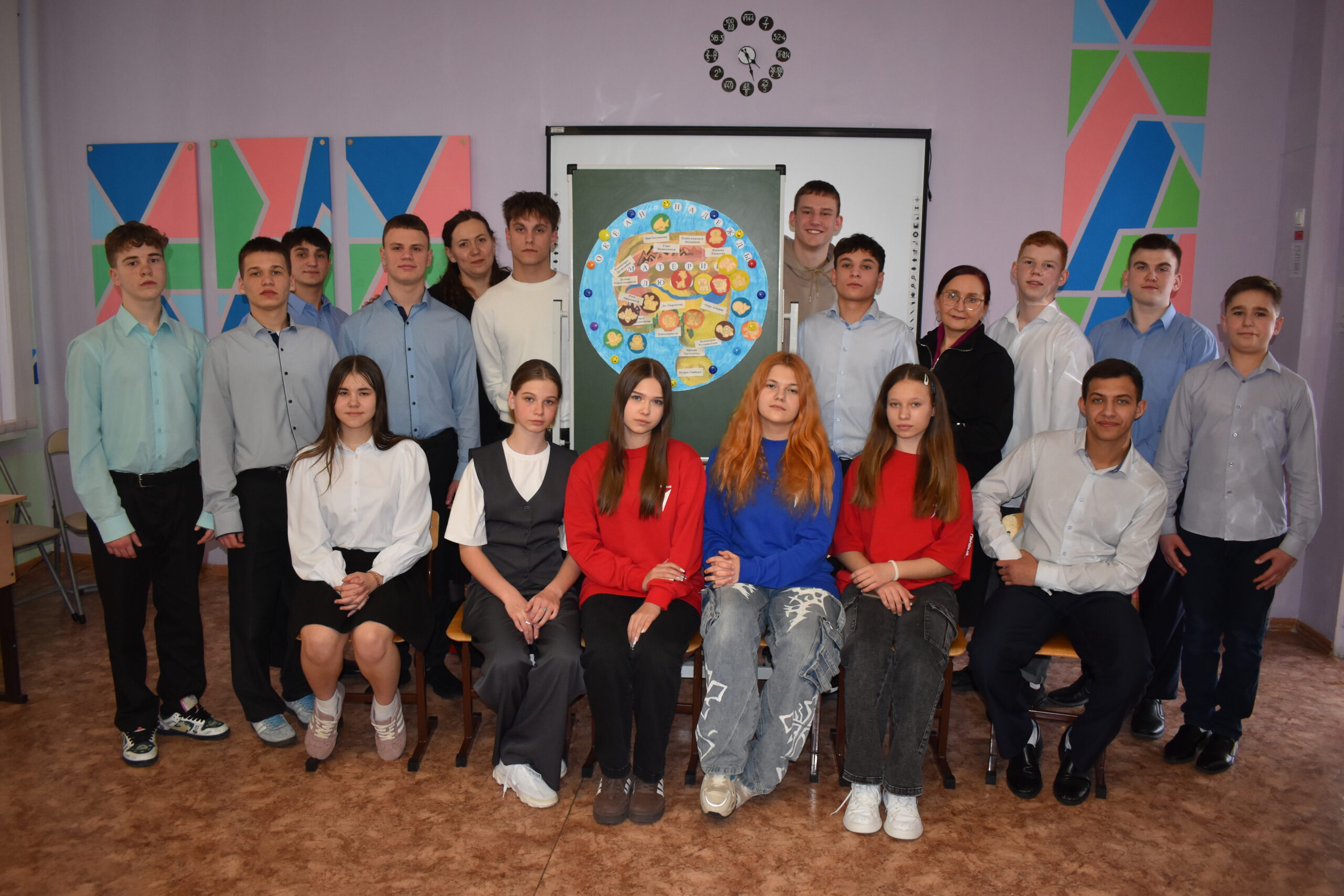 12 марта в ГКО СУВУ прошёл открытый урок, объединивший две научные области – географию и психологию. Участниками интегрированного урока стали не только ребята из нашей школы, но и активисты «Движения первых» — ученицы из ГБОУ СОШ № 3 и ГБОУ СОШ № 9. Разбирая понятие «климат», который объединяет две науки, ребята поняли, что речь идет не только о погоде за окном, но и о взаимоотношениях в коллективе. Во время занятия участники создали на карте свою школьную страну и наполнили ее разными географическими объектами — горами Безопасности, равниной Уважения, плоскогорьем Дружелюбия и многими другими географическими достопримечательностями, чьи названия являются составляющими благоприятного климата в коллективе. Каждый объект нужно было заработать выполняя непростые тренинговые задания. В итоге на карте выросла удивительная страна, наполненная доброй атмосферой взаимного сосуществования.